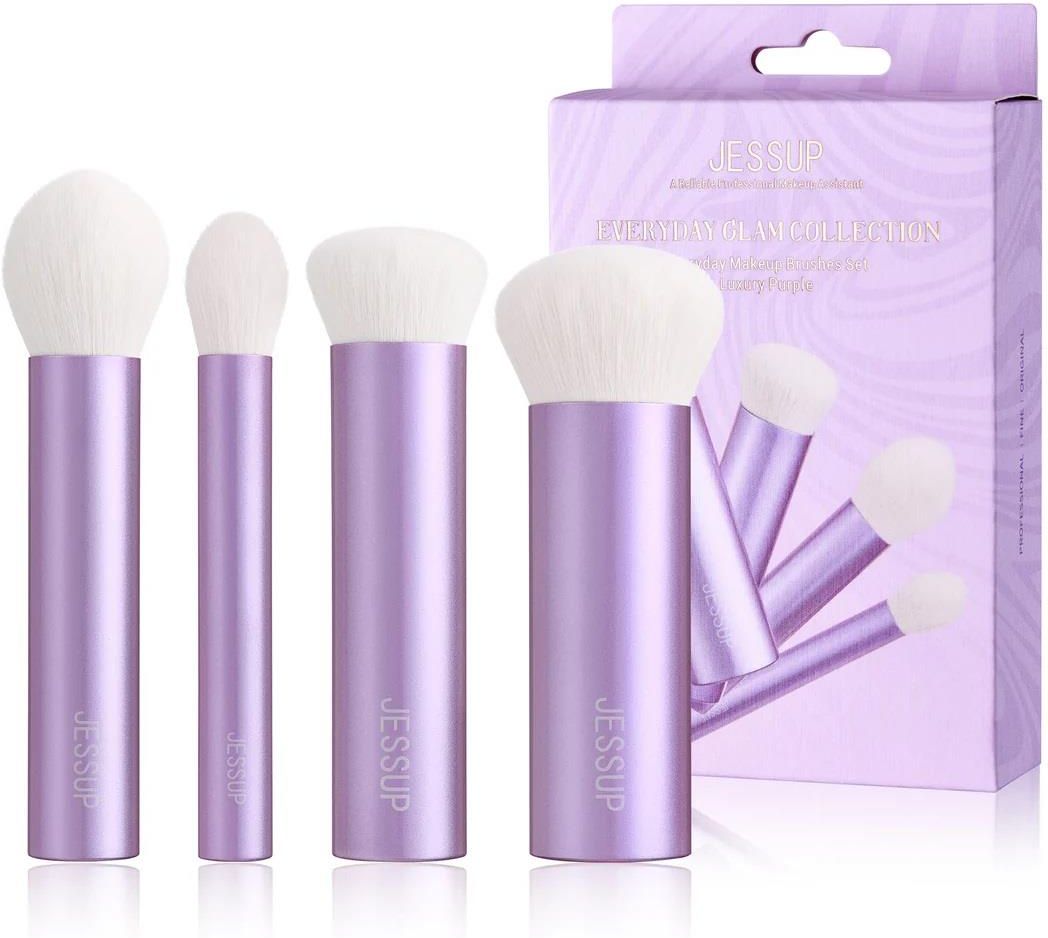 Jessup Everyday Glam Collection Zestaw Pędzli do Makijażu T517 Ten luksusowy fioletowy zestaw pędzli do makijażu prezentuje charakterystyczny zakrzywiony design JESSUP, elegancko łączący funkcjonalność i styl. Zestaw zawiera niezbędne narzędzia kosmetyczne do podkładu, pudru, różu i bronzera. Każdy pędzel kabuki został starannie zaprojektowany z wyjątkowym kunsztem, dzięki czemu idealnie nadaje się do codziennej aplikacji, łatwo mieści się w kosmetyczce i doskonale nadaje się do podróży. Włosie: Jessup Exclusive Faux Natural Hair, wegańskie, nietestowane na zwierzętach, łatwe do czyszczenia. Pędzle zapakowane są w eleganckie pudełko z błyszczącym wzorem, jest to wspaniały wybór na prezent. Wersja: T517