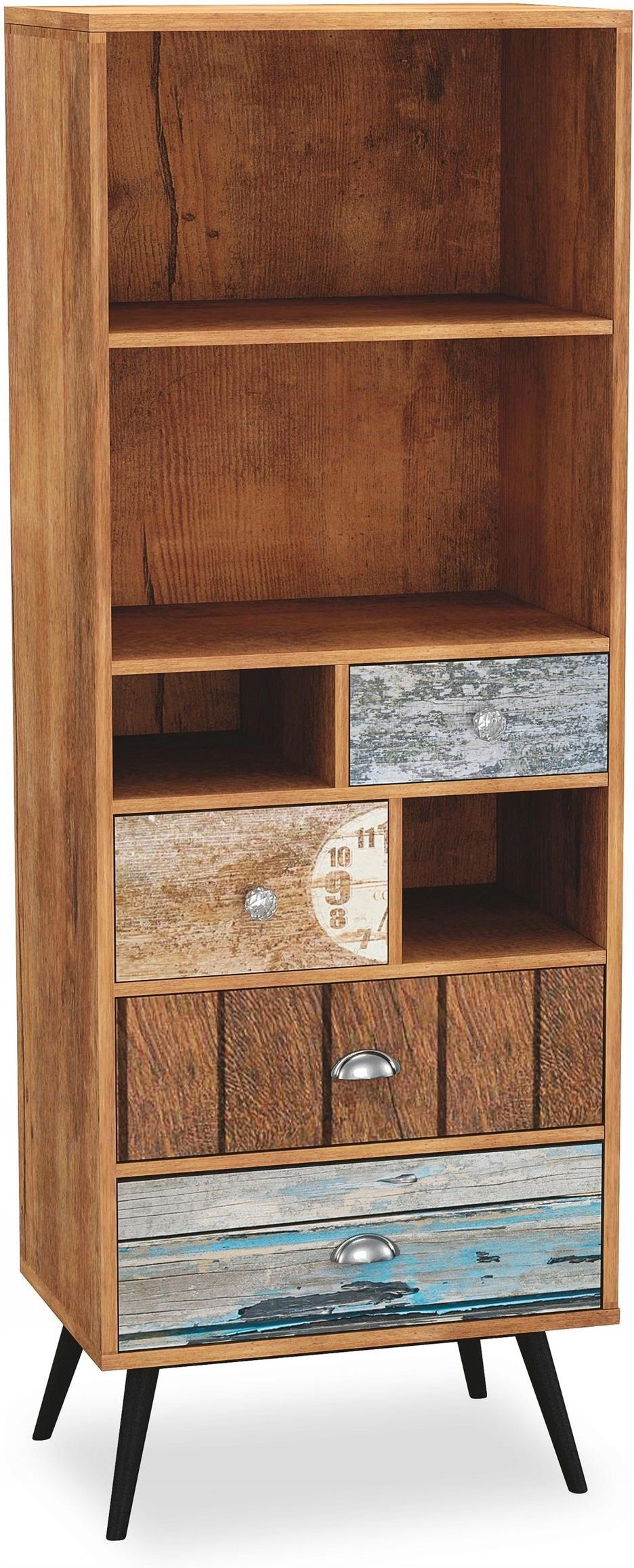 Bardzo wyjątkowy i atrakcyjny regał Mezo REG1 firmy Halmar. Wykonany z płyty meblowej laminowanej. Nóżki ze stali w kolorze czarnym. Posiada cztery szuflady i cztery półki. Wkomponuje się w pomieszczenia zainspirowane stylem rustykalnym, vintage, industrialnym, loft.