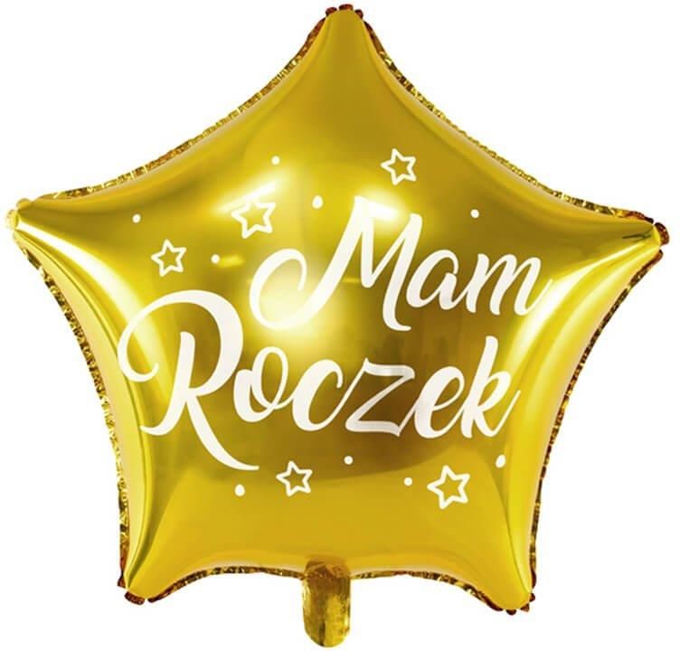 BALON GWIAZDKA ZŁOTA MAM JUŻ ROCZEK 45 CM NA HEL Złoty balon gwiazdka Mam roczek Rozmiar: 48 cm (19 cali) Kolor: złoty z białym napisem. Balon można napompować powietrzem lub helem. Kod produktu: FB86M. Opakowanie zawiera 1 balon urodzinowy w kształcie gwiazdki. Produkt wysokiej jakości ⭐⭐⭐⭐⭐ Balon gwiazda na pierwsze urodziny Złoty balon gwiazda świetnie sprawdzi się jako efektowna dekoracja hucznie obchodzonych pierwszych urodzin Twojego dziecka! Oferowany balon będzie pasował zarówno na roczek chłopca jak i dziewczynki Prezentowany balon foliowy gwiazdka wyróżnia się się wysoką jakością wykonania. Do jego wyprodukowania wykorzystano wytrzymałą metalizowaną folię w kolorze złotym z białym nadrukiem Mam roczek. Oferowane przez nas balony te spełniają europejskie normy CE – oznacza to że są przebadane laboratoryjnie, bezpieczne i nadają się do recyclingu. Balon gwiazda na roczek dziecka Prezentowany balon na roczek sprawi wszystkim wiele radości. Możesz użyć go jako samodzielną dekorację domu, mieszkania, pokoju dziecięcego, zadaszonego tarasu i restauracji. Z kilku balonów gwiazdek ułożysz efektowny balonowy bukiet Upominek z dołączonym na tasiemce balonem gwiazdą będzie jeszcze bardziej atrakcyjny Włożony do pudełka sam w sobie będzie świetnym prezentem. Balon gwiazda będzie świetnym tłem do zdjęć na sesji zdjęciowej. Zdjęcia z urodzinowym balonem podbiją wyświetlenia na kanałach w social mediach. Balon gwiazdka na hel Balon gwiazdka jest zapakowany w oryginalne opakowanie i należy go we własnym zakresie napompować helem lub powietrzem. Najbardziej efektownie prezentuje się napełniony helem, unosi się wtedy w powietrzu nawet przez kilkanaście dni. Napełniony powietrzem nie będzie się unosić - mimo to będzie świetnie wyglądał. Posiada wbudowany jednokierunkowy zaworek/wentyl - nie trzeba go zawiązywać!