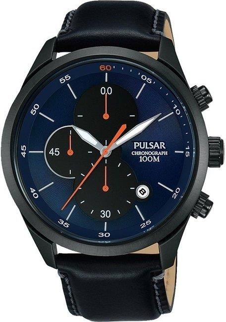Zegarek Męski Pulsar PM3105X1 W komplecie Oryginalny zegarek Oryginalne pudełko Pulsar Parametry zegarka Mechanizm: Kwarcowy Koperta:: Stalowa Szkło:: Mineralne utwardzane (Hardlex) Rodzaj paska: Skórzany Datownik: Dzień miesiąca z Chronografem: 1/10 - 1h Sposób wyświetlania godziny: 12h Wodoszczelność:: WR100 / 10ATM / 100M Wymiary koperty: Szerokość: 43 mm, Grubość: 11 mm Szerokość paska: Przy kopercie 22 mm, Przy klamerce 20 mm Obwód paska: Minimalny: 17 cm, Maksymalny: 22,5 cm Kolor tarczy: Czarny, Niebieski
