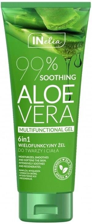 99% SOOTHING ALOE VERA GEL - Wielofunkcyjny żel do twarzy i ciała 250ml Żel wielofunkcyjny do twarzy i ciała zawierający 99% ekstrakt z aloesu. Odpowiedni dla skóry suchej, wrażliwej i problematycznej. Przeznaczony zarówno dla kobiet jak i mężczyzn. Formuła żelu wykorzystuje niezwykłe właściwości aloesu. Składnik ten nawilża skórę i chroni ją przed odwodnieniem. Zapewnia jej też pożądaną elastyczność i miękkość. Ponadto stymuluje syntezę kolagenu i wzmacnia strukturę skóry. EKSTRAKT Z ALOESU – wykazuje działanie przeciwzapalne i silnie nawilżające. Zwiększa syntezę kolagenu i elastyny odpowiedzialnych za jędrność, elastyczność i wygładzenie skóry. Pomaga utrzymać odpowiednią wilgotność skóry. Łagodzi podrażnienia. Aloes jest bogaty w aminokwasy, polisacharydy, mikroelementy i witaminy A, B, C i E. Zawiera też naturalny kwas salicylowy działający antyseptycznie, przeciwgrzybiczo, przeciwbakteryjnie oraz przeciwbólowo. Żel aloesowy wykazuje silne właściwości regenerujące, nawilżające i przeciwzapalne. Szybko poradzi sobie z zaczerwienieniami i podrażnieniami. GLICERYNA - długotrwale i dogłębnie nawilża skórę. Zwiększa jej elastyczność i nadaje gładkość. Przyspiesza procesy regeneracyjne, sprawia, że skóra staje się bardziej elastyczna. PROPANEDIOL - 100% naturalna substancja nawilżająca, doskonały nośnik substancji aktywnych, naturalny konserwant. Działanie: -Nawilża -Odświeża -Chłodzi -Ujędrnia -Regeneruje -Pielęgnuje Cechy: - Przyjemny zapach - Higieniczna aplikacja - Brak lepkości skóry - Szybkie wchłanianie - Wegański skład - Bogata formuła Stosowanie: SOOTHING ALOE VERA GEL to kosmetyk wielofunkcyjny. Żel można stosować jako krem do skóry twarzy, krem łagodzący podrażnienia po opalaniu, krem po goleniu, krem po depilacji, serum łagodzące zaczerwieniania na skórze, serum nawilżające skórę, nawilżający krem do ciała, serum do włosów, żel chłodzący. Informacje Seria REVERS - INelia