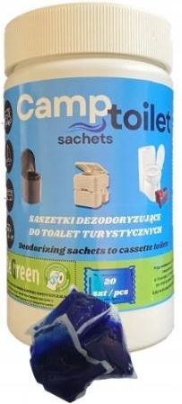 Saszetki kapsułki dezodoryzujące do toalet turystycznych formuła Toi-toi Rozpuszczalne i wygodne w użyciu. MOCNY ZAPACH Wygodne w użyciu, wodo rozpuszczalne saszetki do zbiornika na ścieki (czarna woda). Eliminują nieprzyjemne odory pozostawiając trwały i świeży zapach. Specjalnie stworzona formuła wspomaga rozkład nieczystości i papieru toaletowego, ułatwiając opróżnianie zbiornika. Produkt jest biodegradowalny. Sposób użycia: 1 saszetka na zbiornik o pojemności 20 l. Wrzuć saszetkę a następnie wlej 2-3 l wody. Do większych zbiorników stosuj proporcjonalnie większe dawki. Zalecamy opróżnianie zbiornika nie później niż co 5 dni lub po wcześniejszym zapełnieniu toalety. Zawartość zbiornika należy opróżniać tylko w wyznaczonym do tego miejscu Przechowywać w suchym pomieszczeniu w temperaturze od 5°C do 35°C. Chronić przed mrozem oraz bezpośrednim nasłonecznieniem. Okres trwałości: 2 lata od daty produkcji Zapach - Cherry lub Buble Gum Opakowanie: 20 szt.