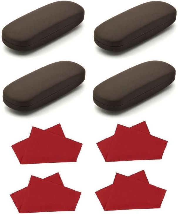DUŻY ZESTAW 8 PRODUKTÓW: ✅ 4x Etui na okulary STHC-13B kolor brązowy z czarnym wnętrzem ✅ 4x Ściereczka z mikrofibry czerwona 15x10cm ☑️4szt - Etui na okulary STHC-13B kolor brązowy z czarnym wnętrzem Idealne do okularów korekcyjnych, ale pomieści także wiele modeli przeciwsłonecznych ✔️ Dane …