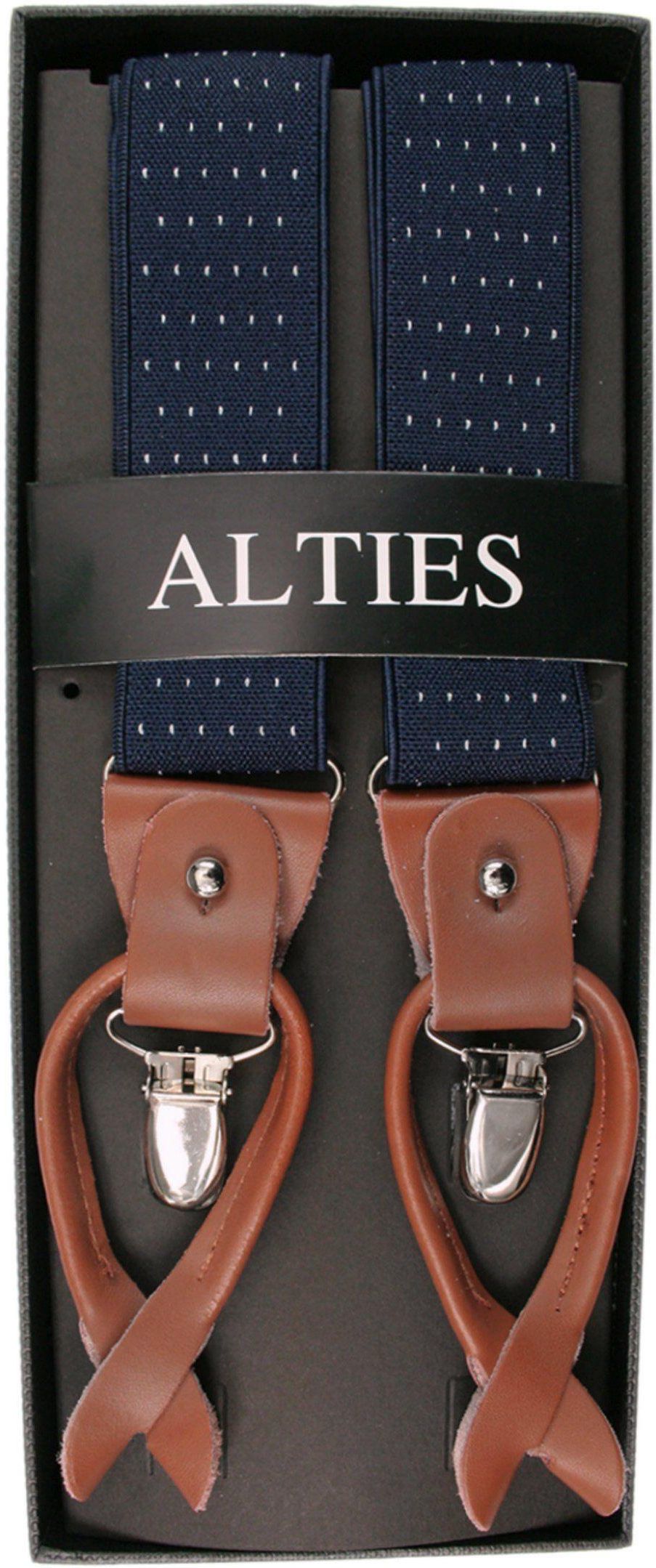 Szelki Męskie, Zapięcie na Guziki lub Żabki - ALTIES - Granatowe w Drobny Groszek SZALTS0094 Jarosław