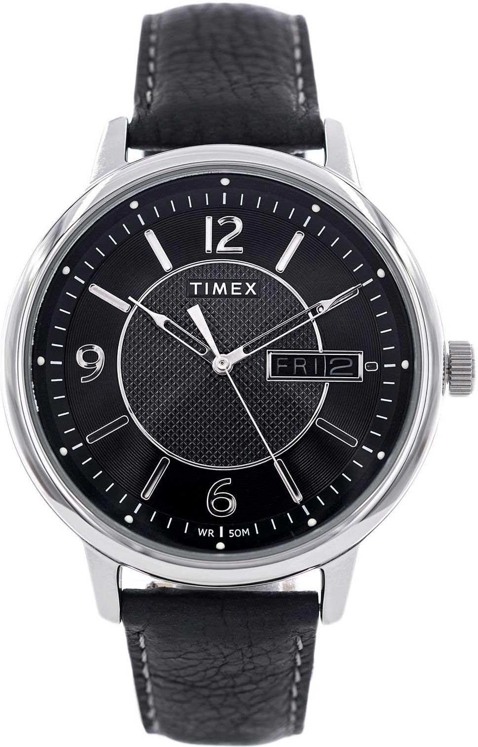 Timex TW2V29200 Zegarek Timex TW2V29200 to doskonałe połączenie elegancji i funkcjonalności. Jego klasyczny design sprawia, że jest idealnym dodatkiem do każdej stylizacji, a jednocześnie spełnia wszystkie praktyczne wymagania nowoczesnego użytkownika. Dzięki starannemu wykonaniu oraz wysokiej jakości materiałom, ten zegarek stanie się niezawodnym towarzyszem w codziennym życiu. Styl i materiały Zegarek Timex TW2V29200 przyciąga wzrok swoim klasycznym designem. Jego metalowa koperta w kolorze srebrnym, o średnicy 45 mm i grubości 11 mm, nadaje mu elegancki wygląd. Pasek wykonany z wysokiej jakości skóry naturalnej w kolorze czarnym jest zarówno trwały, jak i wygodny w codziennym noszeniu. Dodatkowo, białe przeszycia nadają mu subtelnej charakterystyki, a metalowa klamra w kolorze srebrnym zwiększa jego funkcjonalność. Mechanizm Zegarek Timex TW2V29200 wyposażony jest w kwarcowy mechanizm, który zasilany jest baterią. Tego rodzaju mechanizmy są cenione za swoją precyzję, a dokładność wskazań wynosi +/- 10 sekund na miesiąc. Dzięki temu użytkownik może cieszyć się niezawodnością i prostotą obsługi. Szkło W tym modelu Timex TW2V29200 zastosowano mineralne szkło, które charakteryzuje się wysoką odpornością na zarysowania oraz doskonałą przejrzystością. Dzięki temu tarcza w kolorze czarnym, z elementami w srebrnym odcieniu, pozostaje wyraźna i łatwa do odczytania, co sprawia, że korzystanie z zegarka staje się przyjemnością. Wodoszczelność Zegarek Timex TW2V29200 posiada wodoszczelność na poziomie 50 metrów, co oznacza, że jest odporny na działanie wody. Użytkownik może bez obaw korzystać z zegarka podczas pływania, co czyni go praktycznym wyborem na różne okazje. Dodatkowe funkcje Model ten oferuje także szereg dodatkowych funkcji, które zwiększają jego użyteczność: nie zawiera niklu, długość paska część z dziurkami: 120 mm, długość paska część ze sprzączką: 95 mm, rodzaj: analogowe, rodzaj paska: pasek, rodzaj szkła: mineralne, zapięcie: na sprzączkę. Okienko datownika umieszczone na godzinie trzeciej wskazuje aktualny dzień miesiąca oraz dzień tygodnia, co jest bardzo praktyczne w codziennym użytkowaniu. Zegarek Timex TW2V29200 łączy w sobie elegancję oraz wysoką jakość wykonania, co sprawia, że jest ciekawą propozycją dla osób ceniących sobie tradycyjny styl.