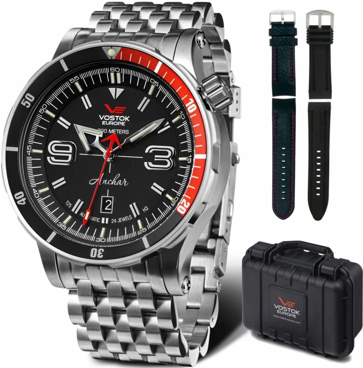 Zegarek męski do nurkowania VOSTOK EUROPE Anchar NH35A/510A587 (NH35A-510A587). Zegarek posiada mechanizm automatyczny. Koperta została wykonana ze stali szlachetnej. W komplecie są dwa czarne paski, skórzany i silikonowy. Szkło mineralne utwardzane. Średnica koperty wynosi 49 mm.