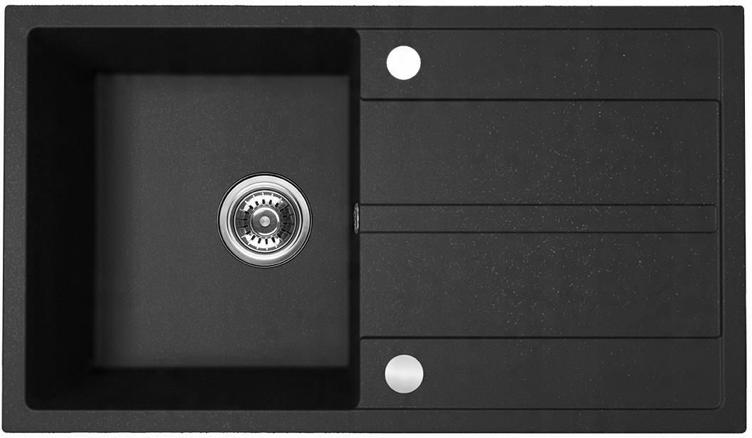 Viti - zlewozmywak 1-komorowy z ociekaczem CZARNY GRANIT Zlewozmywak granitowy Viti w eleganckim czarnym kolorze łączy nowoczesny design z funkcjonalnością, doskonale komponując się w każdej kuchni. Wersja z pełnym ociekaczem zapewnia obszerną przestrzeń do suszenia naczyń, co zwiększa komfort użytkowania i usprawnia codzienne czynności kuchenne. Zlewozmywaki Viti cechuje odwracalny montaż oraz wpuszczany design, co pozwala na łatwe dopasowanie do zmieniającego się układu kuchni i ułatwia utrzymanie czystości. Innowacyjny syfon Space Saving maksymalizuje przestrzeń pod zlewem, zapewniając dodatkowe miejsce na akcesoria kuchenne, natomiast precyzyjnie zaprojektowany ociekacz skutecznie odprowadza wodę, minimalizując jej gromadzenie i upraszczając sprzątanie. Wykonany z wysokiej jakości granitu, zlewozmywak Viti jest trwały, odporny na uszkodzenia mechaniczne, wysokie temperatury i plamy, a jego gładka powierzchnia jest łatwa w pielęgnacji. Czarny kolor nadaje nowoczesny i elegancki wygląd, czyniąc zlewozmywak Viti idealnym wyborem do współczesnej kuchni. Kod SBX 711Y Wykończenie: Czarne Do szafki min. (cm): 50 cm Model:1-komorowy, Prostokątny Fabrycznie wycięte otwory pod baterię: Tak Szerokość całkowita (mm): 440 Długość całkowita (mm): 760 Głębokość całkowita (mm): 175 Głębokość komory (mm): 160 Syfon w zestawie: Tak, syfon Space Saving Rodzaj korka: Manualny Przyłącze do zmywarki: Tak Liczba komór: 1 Odporny na szok termiczny: Tak Odporny na wysoką temperaturę: Tak, do 250°C Odporny na przebarwienia: Tak Odporny na uderzenia: Tak Odporny na zarysowania: Tak