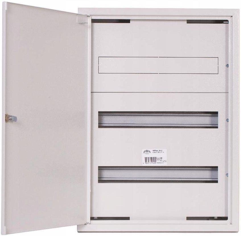 Rozdzielnica modułowa NRPSM 54 3x18 nadtynkowa IP30 - 54-3-18-2 Prąd znamionowy ciągły: In≤100A Napięcie znamionowe łączeniowe: Un=400V Napięcie znamionowe izolacji: Ui=500V Kolor: biały RAL 9002 Klasa ochronności: I Stopień ochrony: IP30 Sposób montażu: zabudowa na ścianie Wykonanie: drzwi obudowy wykonane są z blachy stalowej o grubości 1 mm, z ochronna powłoką lakierową koloru RAL 9002 lub RAL 9003, nakładaną metodą elektrostatyczną. Korpus i stelaż obudowy wykonane są z blachy ocynkowanej o grubości 1 mm Zastosowanie: wnętrzowe rozdzielnice nN, przeznaczone do instalowania aparatury modułowej. Estetyczna konstrukcja obudów wraz z zatrzaskowym mocowaniem osłony aparatów umożliwiają zmniejszenie gabarytów obudowy przy zachowaniu dostatecznej ilości miejsca na aparaty i przewody Standardowe wyposażenie: szyna TH 35, szyny zaciskowe, izolator, zestaw wkrętów i nakrętek, przewód ochronny żółto-zielony, zestaw naklejek, zaślepki plastikowe prostokątne i okrągłe Ilość modułów: 54 Szerokość: 440mm Wysokość: 605mm Głębokość: 132mm Wersja z zamkiem Uwaga. Zdjęcie poglądoweMonta: Natynkowe;Stopie ochrony IP: IP30;Moliwo rozbudowy: Nie;Wysoko [mm]: 605;Szeroko [mm]: 440;Gboko [mm]: 132