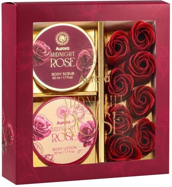 Aurora Midnight Rose Zestaw Prezentowy Peeling Do Ciała 50ml + Balsam Do Ciała 50ml + Płatki Mydlane Do Kąpieli 8x4g Jasło