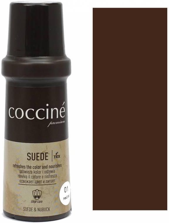 COCCINE SUEDE RENOWATOR - FARBA DO ZAMSZU I NUBUKU 75ML CIEMNY BRĄZ 19 (99988/DARKBROWN) Suede Renowator Koloru - Do Zamszu i Nubuku Preparat odżywczy, przeznaczony do pielęgnacji obuwia z zamszu i nubuku, w tym butów z membraną TEX. Odświeża i wyrównuje barwę skóry, przywraca żywy kolor i oryginalny „puszysty” efekt tego typu skór. Preparat nie blokuje migracji wilgoci na zewnątrz, dzięki czemu stopa nie poci się nadmiernie i oddycha przez skórę obuwia. Chroni przed wpływem promieni słonecznych na barwę skóry i przed nadmiernym osiadaniem kurzu. Uwaga zabezpieczyć podeszwy przed ewentualnym przebarwieniem! Pasta w płynie - odświeża kolor Bardzo skuteczny środek do odnowienia koloru (zamsz/nubuk) marki Coccine. Idealnie sprawdzi się do regularnej pielęgnacji obuwia oraz odświeżenia koloru. Po zastosowaniu pasty, skóra staje się puszysta i przyjemna w dotyku. Preparat wnika w głębokie warstwy skór dostarczając niezbędnych substancji odżywczych. Zabezpiecza i chroni przed zabrudzeniami i nadmiernym osiadaniem kurzu. Często stosowany przed gruntowną renowacją obuwia. Sposób Użycia Oczyścić powierzchnię z zabrudzeń specjalną szczotką do zamszu i nubuku Dokładnie rozprowadzić płyn po powierzchni skóry Zostawić do wyschnięcia. Dokładnie wyszczotkować skórę