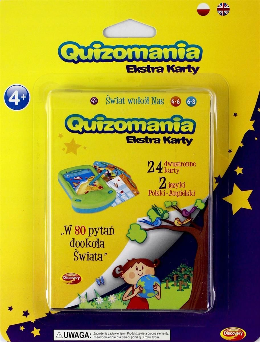 Quizomania Extra karty Świat wokół nas DD 10924 Dumel Discovery Quizomania posiada 2 poziomy trudności. Pierwszy przeznaczony jest dla dzieci w wieku 4-6 lat, drugi od 6-8 lat, dzięki czemu Dziecko będzie mogło korzystać z niej przez długie lata. Do kart potrzebna jest przenośna konsola edukacyjna (można kupić osobno), która doskonale sprawdza się w podróży. Sprawdź Swoją wiedzę o Świecie odpowiadając na 80 pytań.Zestaw zawiera 24 dwustronne karty.Wiek: 3 lata +Wymiar pojedynczej karty: 9.5 x 12.5 cm