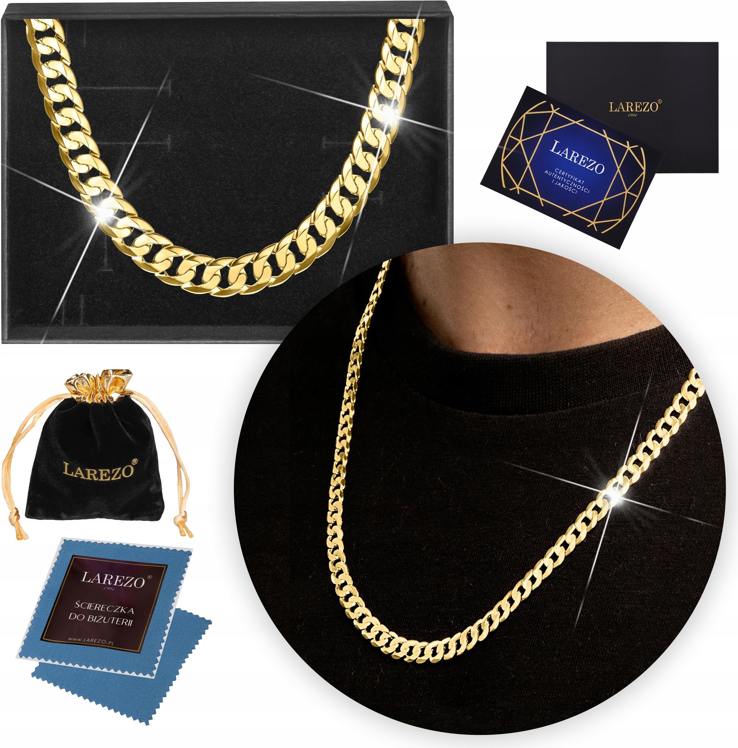 Larezo Złoty Łańcuszek Męski 585 Pancerka 55cm Pełny Kuty Gruby 6,2mm Srebro 925 Jasło