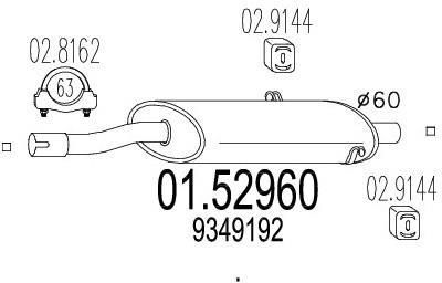 Tłumik srodkowy MTS 01.52960 (01.52960) (SIGAM: 51402SAAB: 9349192FONOS: 809253CIA: 21411EBERSPÄCHER: 33.708.84BOSAL: 215-755CISAM: 620508TIMAX: 220215ANSA: SA1445DESCAM: 270402ZARA: 94529IMASAF: SB2606ROSI: 10259TIMAX: SB52VWALKER: 09253)