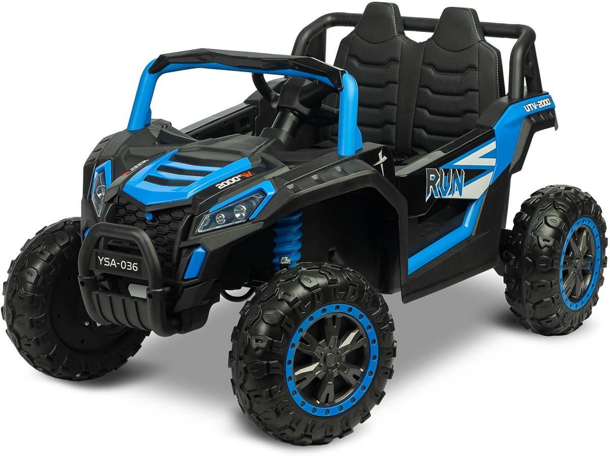 POJAZD NA AKUMULATOR QUAD TOYZ AXEL 4X4 BUGGY ATV Axel to wyjątkowy pojazd na akumulator w typie Buggy ATV, łączący potężne osiągi z bezpieczeństwem i komfortem. Ten terenowy pojazd zapewnia niesamowitą zabawę podczas jazdy, ponieważ posiada napęd na 4 koła. Każde napędza silnik o mocy 45W, co sprawia, że radzi sobie doskonale na różnorodnym terenie. Duże piankowe koła z wysokim prześwitem gwarantują doskonałą stabilność i zdolność pokonywania nierówności. Maksymalne obciążenie pojazdu to aż 30 kg, co czyni go idealnym wyborem dla aktywnych dzieci. Komfort jazdy zapewniają tylne amortyzatory, wygodny fotel pokryty ekoskórą, biodrowe pasy bezpieczeństwa, łagodny start oraz automatyczny hamulec. Dodatkowo, pojazd wyposażony jest w detale zwiększające frajdę z użytkowania, takie jak otwierane drzwi, panel multimedialny z bluetooth i podnoszona maska. Zasilany jest solidnym akumulatorem o pojemności 12V/10Ah. Axel to gwarancja długotrwałej i ekscytującej zabawy dla małych kierowców. Najważniejsze cechy: Jednoosobowe auto na akumulator o wyglądzie buggy ATV różne możliwości zabawy – dziecko może samodzielnie prowadzić samochód akumulatorowy lub opiekun może sterować zdalnie pilotem tylne zawieszenie z amortyzatorami szeroki fotel z ekoskóry koła z pianki EVA z głębokim bieżnikiem tzw. wolny start – samochód rozpędza się stopniowo biodrowy pas bezpieczeństwa automatyczny hamulec otwierane drzwi świecące przednie światła Led otwierana maska pojazdu kierownicę z klaksonem i przyciskiem uruchamiającym melodie panel multimedialny z USB i bluetooth oraz wgranymi melodiami wyjątkowa moc dzięki czterem silnikom 45W Dane techniczne: Przedział wiekowy: 3 – 8 lat Wymiary: 113x73x65 cm, prześwit: 17 cm Waga produktu: 19,7 kg Limit wagowy: max. 30 kg Zasilanie: 4 x silnik 45W 12V, 1 x akumulator (10Ah 12V) Wymiary siedziska: 44x21 cm Wysokość oparcia: 31 cm Wymiary opakowania: 102 x 63 x 35 cm Waga brutto: 23 Kg