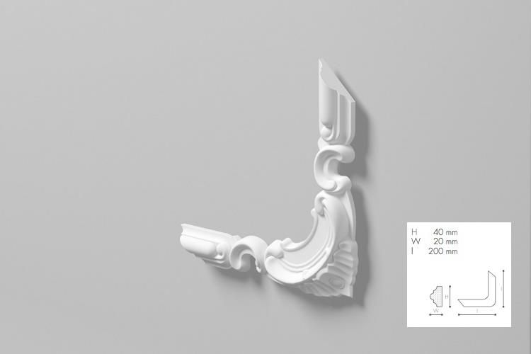 Narożnik ścienny Z101 dekoracyjny, to piękny zestaw 4 narożników do listwy panelowej Z10 sztukateria NMC kolekcja Noel Marquet Z101 element szerokiego zastosowania. Piękny narożnik ścienny z delikatnym motywem ornamentalnym, model Z101 dedykowany do połączenia z listwą ścienną model Z10. …