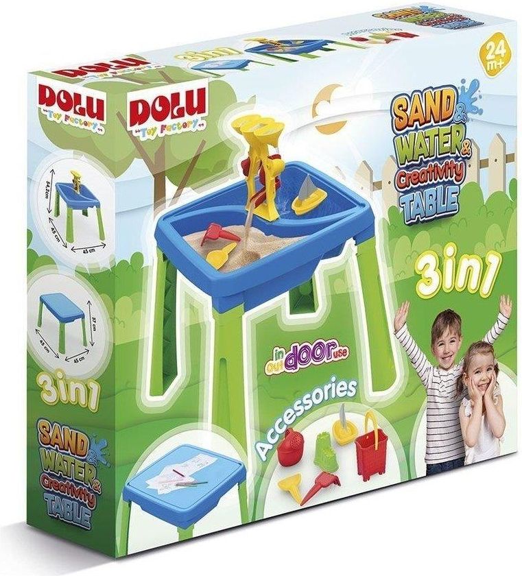 Niebieski Stolik Aktywności 3w1 Odkryj radość z twórczej zabawy na świeżym powietrzu z niebieskim stolikiem aktywności 3w1 od Dolu! Ten kolorowy stolik edukacyjny to idealne rozwiązanie dla maluchów marzących o odkrywaniu nowych przygód w ogrodzie, na tarasie czy nawet na domowym balkonie. Wszechstronna Zabawa dla Dzieci od 2. Roku Życia Nasz stolik aktywności został zaprojektowany z myślą o dzieciach powyżej 2. roku życia. Jego wyjątkowa konstrukcja oferuje dwie oddzielne komory, które można napełnić zarówno piaskiem, jak i wodą. To doskonała okazja do rozwijania kreatywności i umiejętności manualnych poprzez zabawę! Kompletny Zestaw Akcesoriów W zestawie znajdziesz różnorodne akcesoria, takie jak foremki, łopatki oraz młynki wodne, które wzbogacają każdą zabawę. Dzięki nim dzieci mogą eksperymentować z różnymi strukturami i kształtami, co pobudza ich wyobraźnię oraz wspiera rozwój sensoryczny. Lekka i Stabilna Konstrukcja Zaprojektowany z myślą o wygodzie użytkowania, stolik jest lekki, ale jednocześnie stabilny. Po zakończonej zabawie wszystkie elementy można łatwo wypłukać i schować, co czyni go praktycznym wyborem dla rodziców. Korzyści z Użytkowania Rozwijanie kreatywności poprzez różnorodną zabawę. Poprawa motoryki małej dzięki manipulacji akcesoriami. Stymulacja zmysłów i nauka poprzez zabawę. Łatwe czyszczenie i przechowywanie po zabawie. Idealny na Każdą Przestrzeń Dzięki swojej uniwersalności, niebieski stolik aktywności świetnie sprawdzi się w ogrodzie, na tarasie lub balkonie. Jest to idealny sposób na spędzenie słonecznych dni na świeżym powietrzu, dostarczając dzieciom niezliczonych godzin zabawy i nauki. Podaruj swojemu dziecku niezwykłe doświadczenia z naszym stolikiem aktywności 3w1, który łączy w sobie funkcjonalność i edukację!