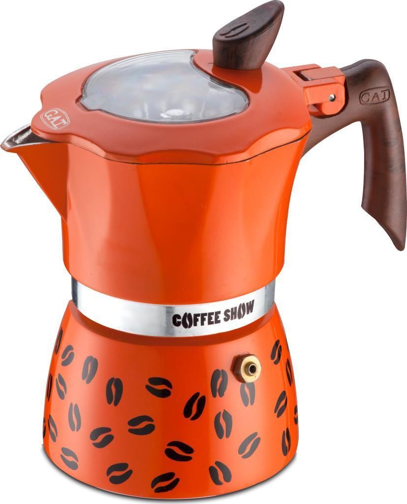 Proces przygotowania kawy w kawiarce: Kawiarka marki G.A.T. to idealne urządzenie dla miłośników kawy, którzy cenią sobie wygodę i jednocześnie doceniają tradycyjny proces parzenia. Za pomocą modelu Coffee Show będziemy mogli zaparzyć aż 3 filiżanki espresso jednocześnie, a cały proces przygotowania napoju jest banalnie prosty. Wystarczy: Zapełnić dolny zbiornik gorącą wodą. Poziom wody nie może przekraczać zaworu bezpieczeństwa. Zapełnić zmielonymi ziarnami metalowy filtr. Ważne żeby nie ubijać kawy, ponieważ może utrudnić to przepływ wody. Umieszczamy filtr w dolnym zbiorniku Dokręcamy górną część i umieszczamy kawiarkę na kuchence, pamiętając aby uchwyt pozostał poza źródłem ciepła. Po kilku minutach woda z dolnego zbiornika zacznie przepływać przez zmielone ziarna i zapełni górny zbiornik aromatycznym i gęstym naparem przypominającym espresso. Dane techniczne: Model kawiarki: Coffee ShowPojemność: 3 tz (3 filiżanki espresso)Kompatybilne z kuchenkami: gazowymi, elektrycznymiMateriał: AluminiumKolor: PomarańczowyWymiary pudełka: 30cm x 18cm x 10cm