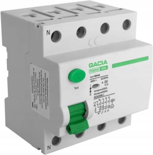 Wyłącznik różnicowoprądowy 6kA 4P 25A 30mA typ: A PR8NM 4P 25A 30mA A ✅ Różnicówka, wyłącznik przeciwporażeniowy, bezpiecznik różnicowoprądowy to elektryczne urządzenie zabezpieczające, które rozłącza obwód po wykryciu, że prąd elektryczny z niego wypływający nie jest równy prądowi wpływającemu. ✅ Służy do ochrony ludzi przed porażeniem prądem elektrycznym przy dotyku pośrednim i bezpośrednim, ogranicza także skutki uszkodzenia urządzeń i innych niepożądanych zdarzeń, w tym – lecz nie wyłącznie – możliwości powstania pożaru. ✅ Znajduje zastosowanie w budownictwie i przemyśle. ✅ Bezpieczny i łatwy montaż na szynie TH35 za pomocą plastikowych klipsów. W zestawie znajduje się 1szt. Wyłącznik różnicowoprądowy PR8NM 4P 25A 30mA A Wyłącznik różnicowoprądowy 6kA 4P 25A 30mA typ: A ✅ Wyłączniki różnicowoprądowe linii PR8NM typu A/AC stosuje się w obwodach elektrycznych zasilanych prądem 50/60 Hz o napięciu znamionowym 230 V dla wyłączników dwu polowych i 400 V dla wyłączników czteropolowych i prądzie znamionowym 25 A do 63 A. ✅ Wyłączniki różnicowoprądowe linii PR8NM typu A/AC wykonanie są zgodnie z normą IEC/EN 61008-1. ✅ Celem poprawy bezpieczeństwa użytkowania wyposażony w czytelny wskaźnik zadziałania. ✅ Wyłączniki różnicowoprądowe linii PR8NM typu A/AC wyposażone są przycisk TEST służący do sprawdzania poprawności wewnętrznego działania urządzenia – test należy wykonywać co 30 dni. Charakterystyka produktu: Typ: A Liczba biegunów: 4P Prąd znamion.: 25A Znamionowy prąd różnicowy A: 30mA Znamionowa zdolność łączeniowa prądu różnicowego A: 500 Czas wyzwolenia: 0,1 s Odporność na udar napięciowy U imp: 6000V Wytrzymałość zwarciowa Inc: 6000 Stopień zanieczyszczenia: 2 Napięcie znamionowe Ue: 400V Charakterystyka produktu: Wskaźnik pozycji pracy: tak Izolacja znamionowa Ui: 500V Częstotliwość prądu Hz: 50/60 Żywotność elektryczna: 4000 Żywotność mechaniczna: 4000 Stopień ochrony: IP 20 Temp. składowania: -30/+70°C Temp. pracy: -30/+50°C Maksymalny przekrój przewodów łączeniowych:25 mm2 Moment dokręcenia zacisków łączeniowych: 3Nm Możliwość podłączenia za pomocą szyn grzebieniowych: tak