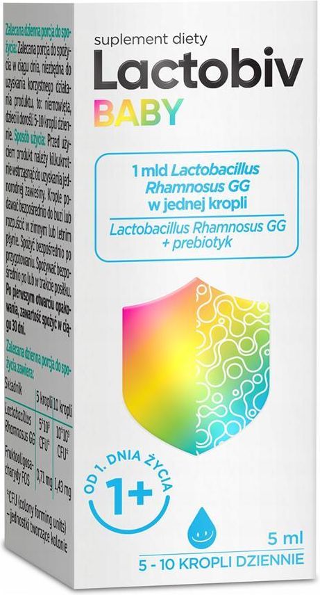 Lactobiv baby zawiera, aż 1 MLD komórek Lactobacillusrhamnosus GG w jednej kropli.