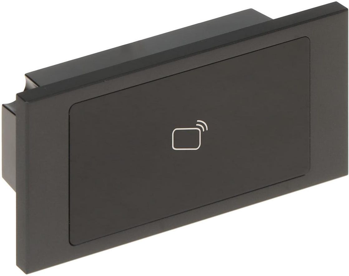 MODUŁ CZYTNIKA ZBLIŻENIOWEGO VTO4202FB-MR1 DO MODUŁU VTO4202FB-P-S2 DAHUA Moduł VTO4202FB-MR1 jest przeznaczony do współpracy z modułem kamery VTO4202FB-P-S2. Kompatybilność: VTO4202FB-x Obsługa kart: Unique EM 125kHz Zasięg odczytu kart: max. 8 cm Liczba obsługiwanych kart zbliżeniowych: 10000 Praca autonomiczna: Brak Wbudowana klawiatura: Brak Przycisk dzwonka: Brak Wyjście sabotażowe: Brak Zasilanie: 5 VDC- Dostarczane z innych modułów Pobór mocy: ≤ 1 W Obudowa: Metal + Plastik, Wodoodporna Kolor: Grafitowy Klasa szczelności: IP65- po dodatkowym uszczelnieniu połączenia obudowy z powierzchnią montażu np. silikonem Wandaloodporna: IK07 Temperatura pracy: -20 °C ... 60 °C Waga: 0.09 kg Wymiary: 100 x 49.9 x 28.5 mm Producent / Marka: DAHUA Gwarancja: 3 lata