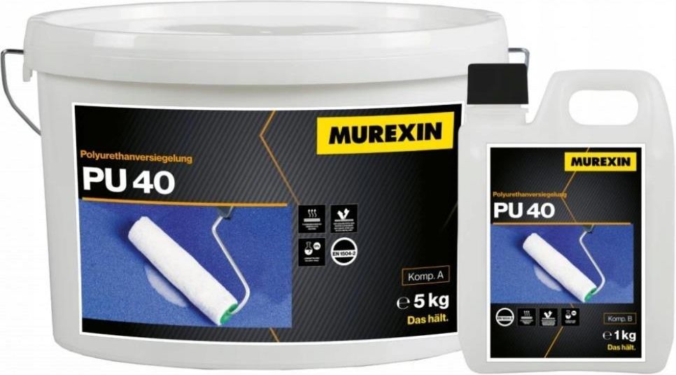 Murexin PU 40 Dwuskładnikowa Powłoka Poliuretanowa na Balkon Taras Garaż Odporna Transparentna 6kg To elastyczna, paroprzepuszczalna, dwuskładnikowa, odporna na promieniowanie UV i warunki atmosferyczne powłoka uszczelniająca na bazie wysokiej jakości poliuretanów. Jest to emulsja wodna i nie zawiera rozpuszczalników. Powłoka PU 40 jest matowa. Zastosowanie powłoki PU 40 Powłoka poliuretanowa PU 40 przeznaczona jest do: stosowania wewnątrz i na zewnątrz wykonywania powłok na podłożach cementowych, nieprzeznaczonych do ruchu kołowego (podłogi i ściany) podłoży z istniejącymi powłokami epoksydowymi lub poliuretanowymi, narażonych na umiarkowane i średnie obciążenia mechaniczne Idealne zastosowania hale produkcyjne i magazyny garaże i laboratoria balkony i loggie galerie handlowe pomieszczenia wilgotne (alternatywa dla płytek ceramicznych) ogrzewanie podłogowe Parametry techniczne Zużycie: 0,15 kg/m²/warstwa Liczba warstw: zaleca się nałożenie 2–3 warstw