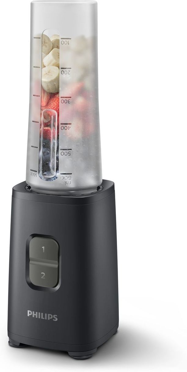 Seria 1000 Blender HR2040/00 Wydajny blender do codziennych koktajli Zaprojektowany, aby usprawnić codzienne miksowanie dzięki mocy 350 W, a wydajne ostrza przetwarzają wszystkie składniki – nawet kruszą lód. Gładka mieszanka w mgnieniu oka przy minimalnym wysiłku. Moc 350 W zapewnia płynne miksowanie w każdej chwili Miksuj swoje codzienne koktajle bez wysiłku dzięki mocnemu silnikowi o mocy 350 W. Ciesz się gładkimi napojami bez grudek w mgnieniu oka. Dwa ustawienia prędkości do dokładnego miksowania Kontroluj szybkość i dokładność miksowania składników dzięki dwóm ustawieniom prędkości, aby za każdym razem uzyskać idealny koktajl. Krusz lód i inne twarde składniki Niezależnie od tego, czy przygotowujesz dip, czy zdrowy koktajl, Twój miniblender poradzi sobie ze wszystkim. Od kiwi po kostki lodu – rozdrobni nawet twarde składniki. Podręczny blender Ciesz się koktajlami gdziekolwiek jesteś, zabierając je w przenośnym kubku. Po prostu zmiksuj koktajl, zamknij pokrywkę i ruszaj w drogę! Kompaktowa konstrukcja 10,8 cm. Dzięki kompaktowej i nowoczesnej konstrukcji miniblender można przechowywać na blacie kuchennym, aby mieć go pod ręką nawet w najbardziej pracowite dni. Akcesoria można myć w zmywarce Nie martw się o czyszczenie podczas przygotowywania koktajlu. Zarówno dzbanek, jak i ostrza można myć w zmywarce. Niezbędne przybory kuchenne Poznaj nasze pozostałe niezbędne przybory kuchenne i stwórz własny zestaw długotrwałych narzędzi w spójnym stylu. 2 lata gwarancji Dodatkowo blender jest objęty 2-letnią gwarancją.