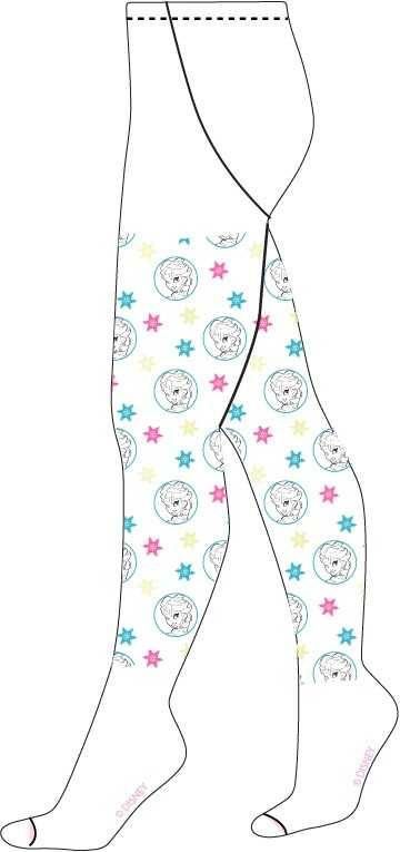 Dziewczęce rajstopki Fozen , o grubości 40 den. Bardzo przyjemnie w noszeniu. Na białym tle kolorowe wzory Elzy. Skład: - 95% Poliamid - 5% Elastan