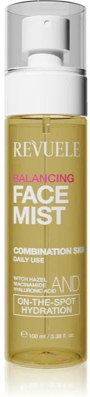 Revuele Balancing Face Mist, 100 ml, mgiełka do twarzy dla kobiet, Spray do skóry zapewni natychmiastowe odświeżenie, wygładzenie i nawilżenie skóry Revuele Balancing Face Mist. Rozbudzi skórę w dowolnym momencie w ciągu dnia i zapewni przyjemne uczucie świeżości – jakbyś dopiero co wyszła spod prysznica. Właściwości: pomaga zapobiegać odwodnieniu skóry utrzymuje równowagę skóry koryguje błyszczenie się skóry i suche miejsca Skład: woda z oczaru wirginijskiego – dzięki silnemu działaniu ściągającemu zwęża pory, oczyszcza, tonizuje, koi i rozjaśnia, wspomaga mikrokrążenie skóry, pomaga zatrzymać wilgoć, reguluje wydzielanie sebum i działa przeciwtrądzikowo kwas hialuronowy – wiąże dużą ilość wody, intensywnie nawilża niacynamid – wspomaga rozjaśnienie skóry, redukcję przebarwień, ujednolicenie kolorytu i wygładzenie nierównej tekstury, pomaga wzmocnić barierę ochronną skóry, a tym samym poprawić poziom nawilżenia skóry produkt wegański Sposób użycia: Rozpyl na twarz odpowiednią ilość preparatu. Stosuj kiedykolwiek w ciągu dnia. Można stosować na podkład.