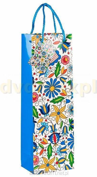 Torba papierowa ozdobiona wzorami kaszubskimi Prezentujemy Państwu dekoracyjną torebkę butelkową, której design czerpie inspirację z kaszubskiej sztuki ludowej. Projekty nawiązują do motywów znanych z tradycyjnych haftów kaszubskich, co nadaje torebce niepowtarzalny, etno-folkowy charakter. Materiał i wykonanie Torba została wykonana z sztywnego i błyszczącego papieru, dzięki czemu jest nie tylko estetyczna, ale także solidna i trwała. Wzory ludowe umieszczono zarówno na przodzie, jak i na tyle torebki, co sprawia, że jest atrakcyjna z każdej perspektywy. Ta torba to doskonały wybór dla osób ceniących tradycyjne wzornictwo i pragnących dodać odrobinę folklornego uroku do swoich prezentów. EAN: 5901845112024
