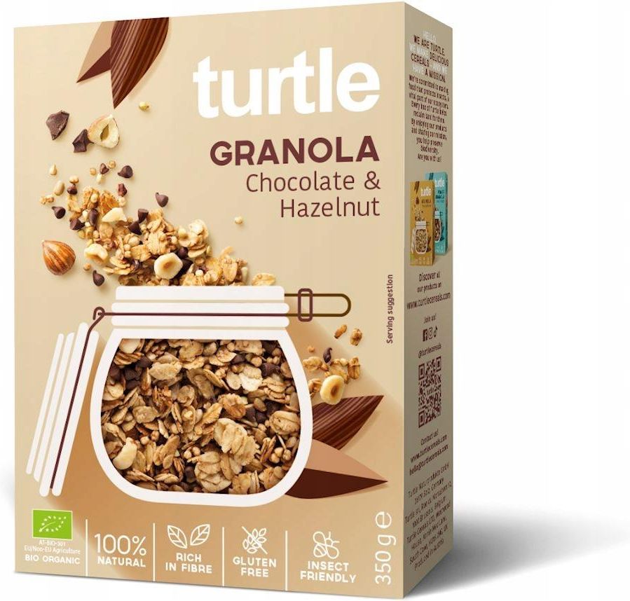Turtle Granola Czekolada Orzechy Laskowe Bezglutenowa Bio 350g Jastarnia