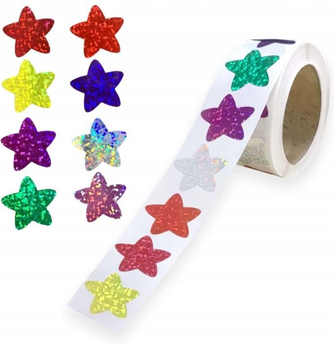 Unicorn Naklejki Gwiazki Stars Brokatowe Kolorowe Etykieta Dekoracyjna 500Szt. Jastarnia
