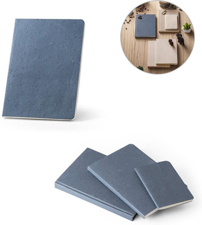 Notatnik A5 z półsztywną okładką wykonaną z odpadów łusek kawy. Papier wewnętrzny wykonany jest z odpadów bawełnianych i jest bardzo trwały. Zawiera 100 stron w linie oraz papierową opaskę z grafiką. W procesie produkcji tego notatnika nie powstały żadne odpady, nie użyto też żadnych środków chemicznych ani drzew