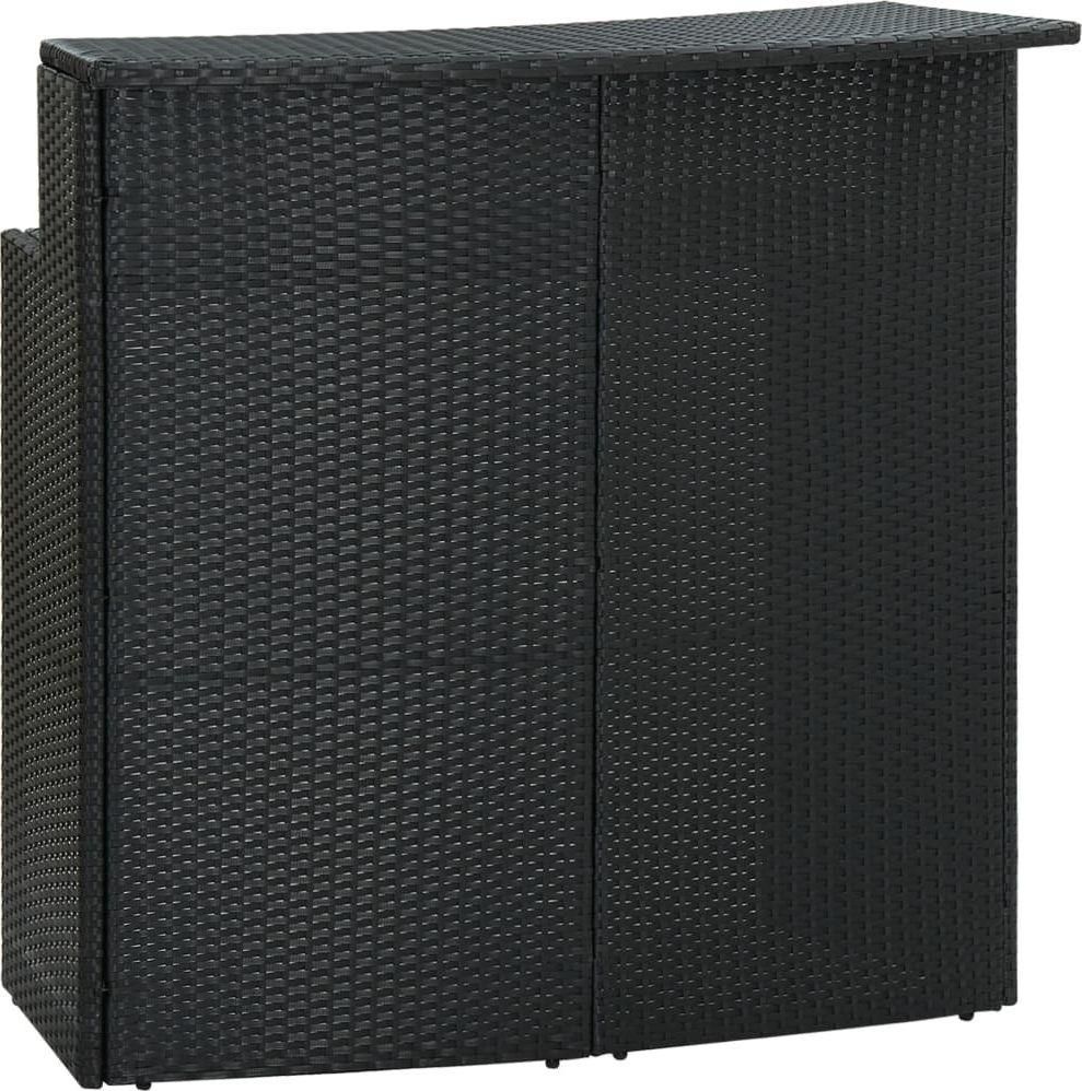 Ogrodowy stolik barowy, czarny, 120x55x110 cm, polirattan vidaXL Kolor: Array Rozmiar: Array Ten wygięty stolik barowy z 2-poziomowym blatem jest idealnym wyborem do każdego domu, ogrodu, baru, pubu, restauracji itp. Wyposażony w malowaną proszkowo stalową ramę pokrytą odpornym na warunki atmosferyczne rattanem PE, ten stolik zapewnia wiele lat użytkowania na zewnątrz. Dwupoziomowy blat gwarantuje dodatkowe miejsce do przechowywania przedmiotów w zasięgu ręki. Dzięki lekkiej konstrukcji z rattanu PE ten stół ogrodowy jest łatwy do przenoszenia. Kolor: czarny Materiał: rattan PE, malowana proszkowo stal Wymiary: 120 x 55 x 110 cm (dł. x szer. x wys.) Wymagany montaż: tak OSTRZEŻENIE: aby zapobiec przewróceniu się produktu, należy przymocować go do ściany za pomocą dołączonego elementu. Legal Documents:Więcej informacji na temat zabezpieczenia mebli przed przewróceniem można znaleźć tutaj
