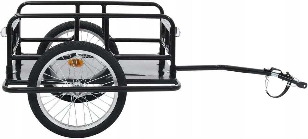 Ta przyczepa rowerowa z dwoma kołami, o maksymalnym obciążeniu 50 kg, jest idealna do przewożenia ciężkich ładunków, takich jak walizki, rośliny, narzędzia i artykuły spożywcze. Przyczepa ta posiada szybkozamykacz do łatwego mocowania do roweru. Przedni i tylny panel na zawiasach pozwolą w szybki sposób załadować i rozładować duże lub nieporęczne przedmioty. Dzięki stalowej konstrukcji ramy ta przyczepa do roweru jest bardzo wytrzymała i trwała. Składany dyszel i boki pozwolą zaoszczędzić miejsce w trakcie przechowywania lub transportu. Montaż przyczepy jest łatwy. Kolor: czarny Główny materiał: stal Wymiary całkowite z dyszlem: 135 x 73 x 90 cm (dł. x szer. x wys.) Wymiary całkowite bez dyszla: 67 x 73 x 48,5 cm (dł. x szer. x wys.) Wymiary przestrzeni ładunkowej: 67 x 44,5 x 28,5 cm (szer. x gł. x wys.) Maksymalne obciążenie: 50 kg Składany dyszel Przednie i tylne panele na zawiasach Koła pneumatyczne 39 cm z żółtymi odblaskami Możliwość złożenia na płasko dla ułatwienia przechowywania i transportu Prosimy mieć na uwadze, że nie jest to przyczepka do transportu dzieci.