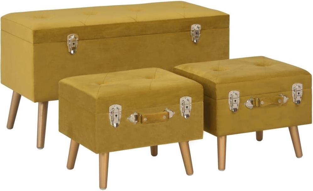vidaXL Pufy Ze Schowkami 3szt. Musztardowe Obite Aksamitem Jastarnia