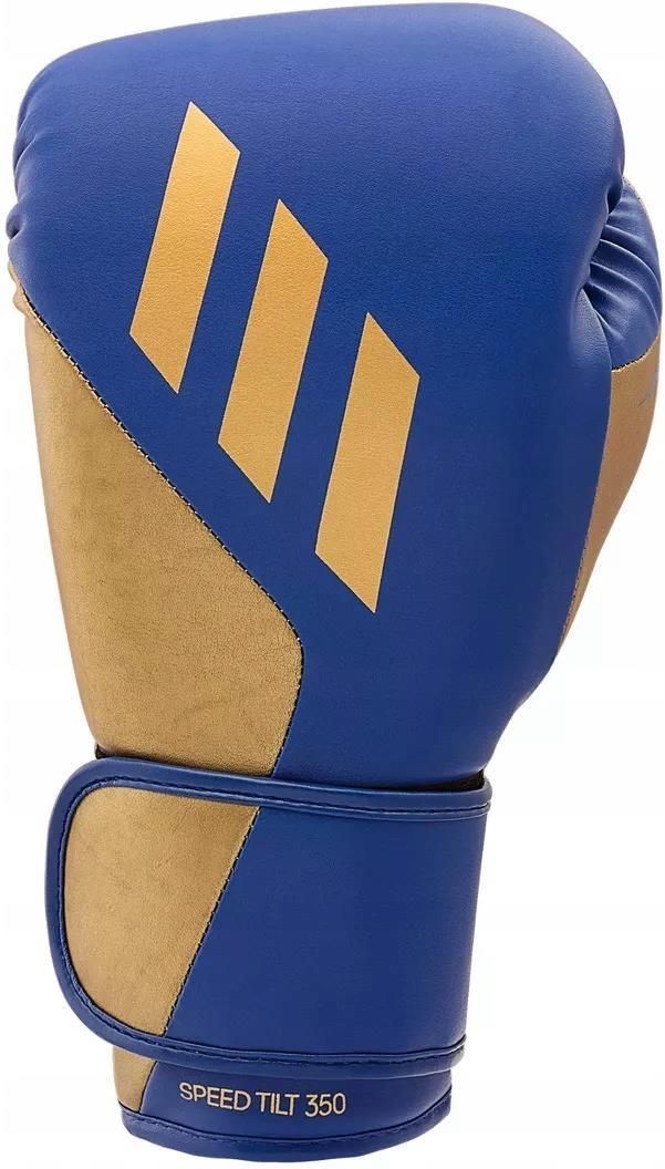 Adidas Speed Tilt 350 Granatowy/Złoty - Waga: 12 OZ Rozmiar / Długość podany tutaj, w tytule lub w opisie: Rękawice bokserskie Adidas Tilt 350 - innowacyjne rękawice bokserskie z unikalnym DNA. Wykonane są z wegańskiej, ekologicznej skóry pochodzącej z kaktusa pochodzącego ze zrównoważonych upraw. Aby zapewnić dodatkową wytrzymałość rękawicom, pod skórą kaktusową znajduje się warstwa tkaniny poliestrowej wykonanej w 100% z butelek po wodzie pochodzących z recyklingu.Tysiące godzin testów prowadzonych przez zawodowych bokserów, światowej sławy trenerów, mistrzów świata i regularnie uprawiających fitness ludzi w celu sprawdzenia dopasowania i jakości konstrukcji rękawic. Innowacyjna konstrukcja Tilt utrzymuje nadgarstek w naturalnym ułożeniu, umożliwiając stopniowe angażowanie kostek. Siła uderzenia rozkłada się w słupkach i metakarpelach zgodnie z ich gęstością kości. Konstrukcja Tilt pozwala pięściom zachować neutralną pozycję bez zmuszania jej do promieniowego odchylenia. Pojedyncza konstrukcja formy chroni przed urazami związanymi z wyprostem lub zgięciem nadgarstka. Rękawice posiadają szeroki system zapinania na rzep w nadgarstku, który umożliwia mocne podparcie nadgarstka. Rękawice bojowe są łatwe do zakładania i zdejmowania, a wewnątrz posiadają wysokiej jakości podszewkę, która zapewnia najwyższy komfort, jednocześnie chroniąc dłonie przed pęcherzami i otarciami podczas długich treningów. Rękawice te mogą być używane zarówno przez profesjonalistów, jak i początkujących i amatorów!. - Innowacyjna konstrukcja TILT®- Ergonomiczny kształt zapobiegający niepożądanemu zginaniu- 100% zrównoważonego rozwoju z elementami zewnętrznymi w wersji wegańskiej DESSERTO skóra kaktusa- Podszewka z poliestru pochodzącego z recyklingu- Wielowarstwowa konstrukcja z pianki