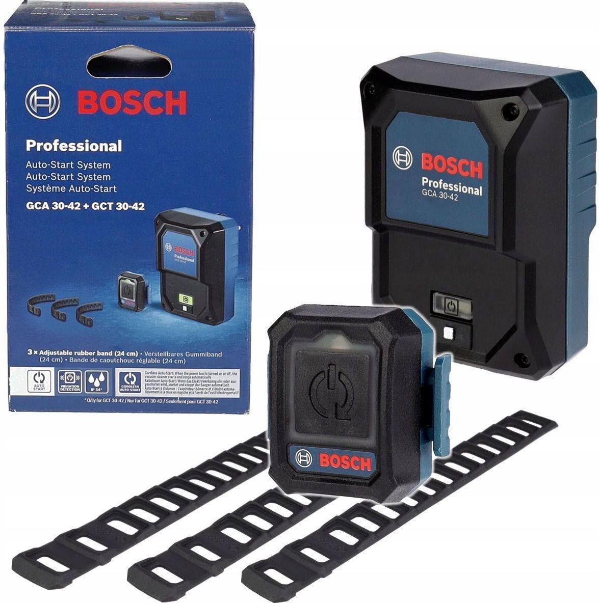 Zestaw GCT 30-42 + GCA 30-42 BOSCH do zdalnego sterowania odkurzaczem podczas pracy z narzędziami akumulatorowymi. W wyposażeniu oferowanego systemu sterowania znajdują się: nadajnik GCT 30-42 3 gumowe paski do mocowania nadajnika na narzędziu odbiornik GCA 30-42 Bezprzewodowy system sterowania GCA 30-42 + GCT 30-42 firmy BOSCH umożliwia automatyczne włączanie i wyłączanie odkurzacza budowlanego podczas pracy z elektronarzędziami akumulatorowymi. Wystarczy zapiąć moduł automatycznego startu za pomocą gumowej opaski do narzędzia akumulatorowego i podłączyć wtyczkę automatycznego startu do gniazda w odkurzaczu. Po sparowaniu nadajnika GCT 30-42 z odbiornikiem GCA 30-42 funkcja Auto-Start wykrywa wibracje uruchomionego narzędzia i automatycznie włącza i wyłącza odkurzacz. Funkcja automatycznego uruchamiania obsługuje odkurzacz za Ciebie, dzięki czemu możesz skupić się na swojej pracy. Oszczędza również energię i zapewnia lepszą ochronę, ponieważ odkurzacz działa jeszcze przez kilka sekund po wyłączeniu narzędzia, aby usunąć każdą drobinę kurzu. Zestaw automatycznego startu jest kompatybilny ze wszystkimi odkurzaczami Bosch Professional wyposażonymi w gniazdo do podłączania elektronarzędzi 9w tym przypadku podłączamy odbiornik GCA 30-42), a także z wieloma innymi dostępnymi na rynku elektronarzędziami i odkurzaczami innych producentów. Nadajnik GCT 30-42 z odbiornikiem GCA 30-42 łączy się za pomocą modułu bluetooth. Nadajnik został wyposażony w duży wygodny przycisk służący do ręcznego włączania i wyłączenia odkurzacza dzięki czemu mamy dodatkową możliwość uruchomienia odkurzacza oraz do parowania nadajnika z odbiornikiem. Duże czytelne diody LED znajdujące się na nadajniku i odbiorniku informują o statusie systemu sterowania. Dostawa zawiera: Nadajnik GCT 30-42 firmy BOSCH Odbiornik GCA 30-42 firmy BOSCH 3 gumowe paski do mocowania nadajnika na narzędziu Instrukcję obsługi w języku polskim