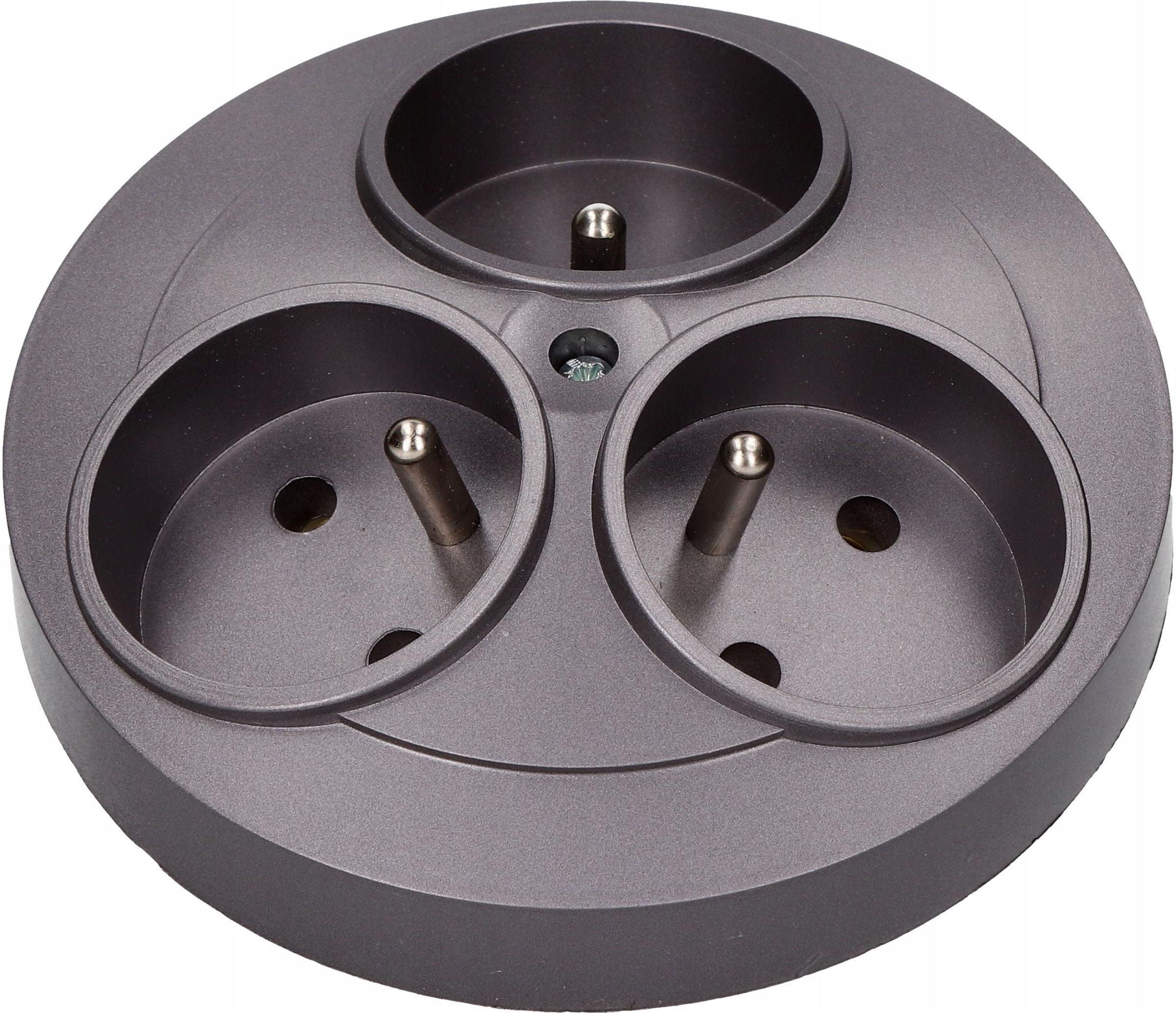 Gniazdo potrójne z uziemieniem serii OPAL w kolorze grafitowym. Model: Pt-36 Op grafit Parametry gniazda: Napięcie maksymalne: 250V Obciążenie maksymalne: 16A Montaż przewodów: zaciski śrubowe Montaż gniazda: puszka podtynkowa Ø60 Średnica pokrywy: ø 10 cm Rodzaj materiału: tworzywo ABS Stopień ochrony w oferowanym gnieździe to IP20. Produkt polskiej produkcji. Spełnia europejskie normy CE, posiada certyfikaty oraz świadectwa zgodności. Producentem produktu jest firma Timex-Elektro.