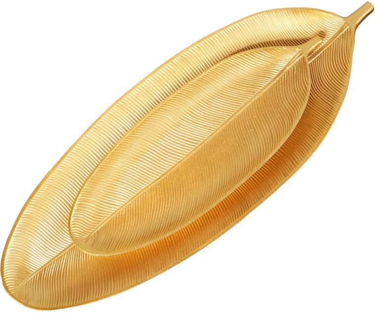 Goliat Zestaw 2 Złotych Tacek Drewnianych W Kształcie Liści Bananowca Pat4 Jastrowie
