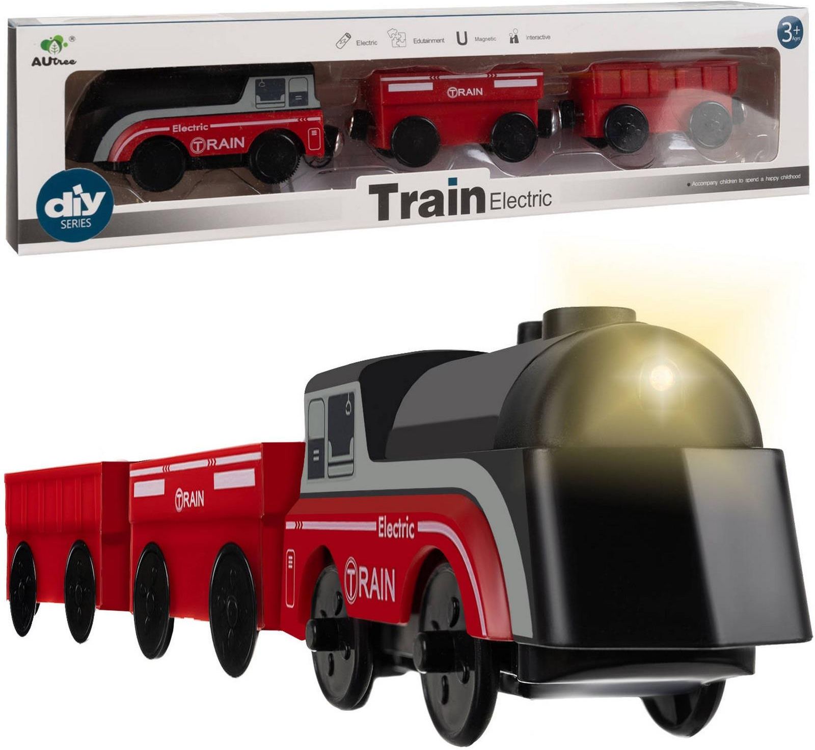 Elektryczna kolejka z lokomotywą i magnetycznymi wagonikami. Realistyczna zabawka z efektem świetlnym, idealna do rozwijania wyobraźni i zdolności manualnych dziecka. Świetna zabawa dla chłopców i dziewczynek!