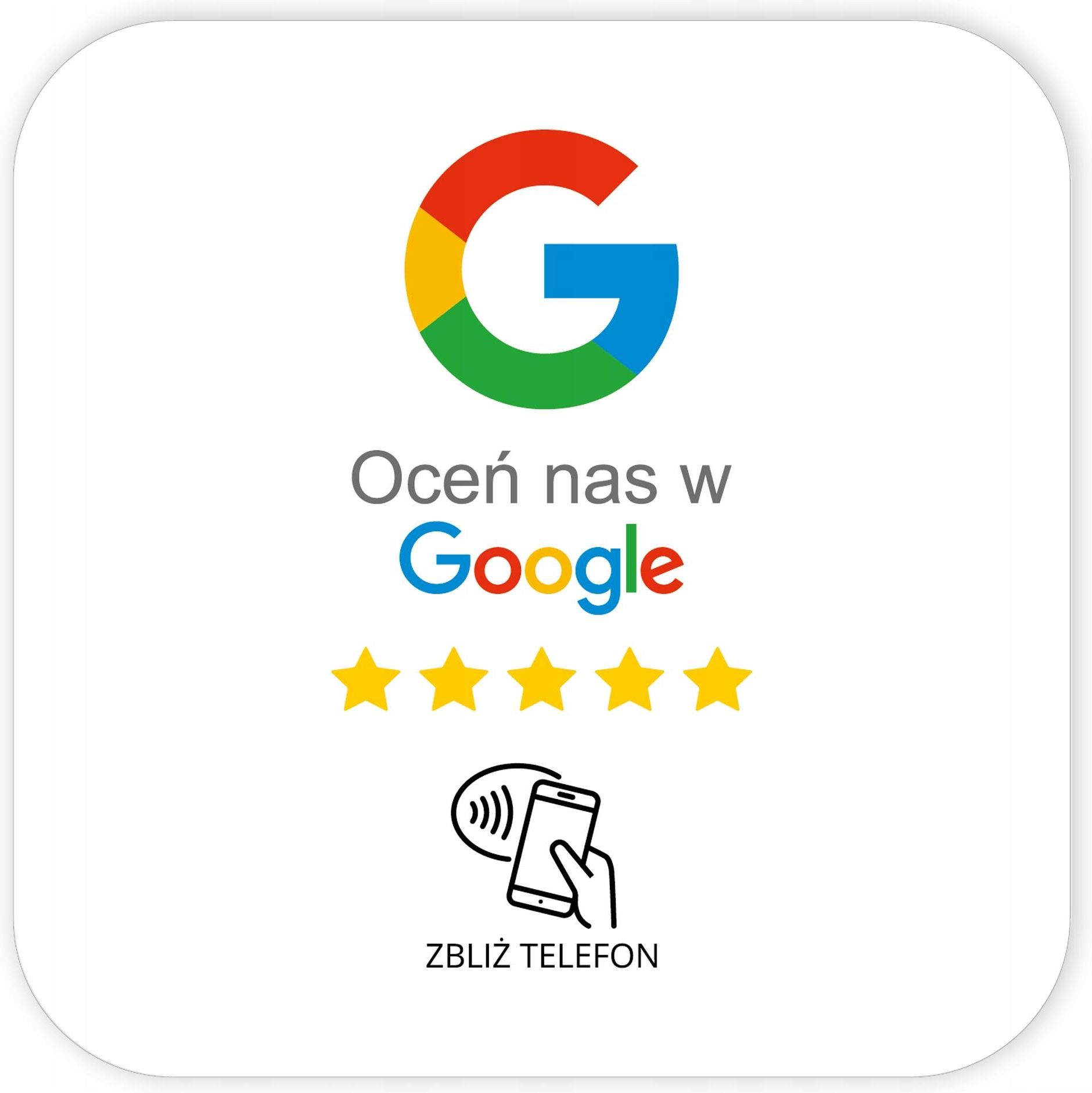 Naklejka NFC „Oceń nas w Google” 12×12 cm – gotowa do użycia Jastrowie