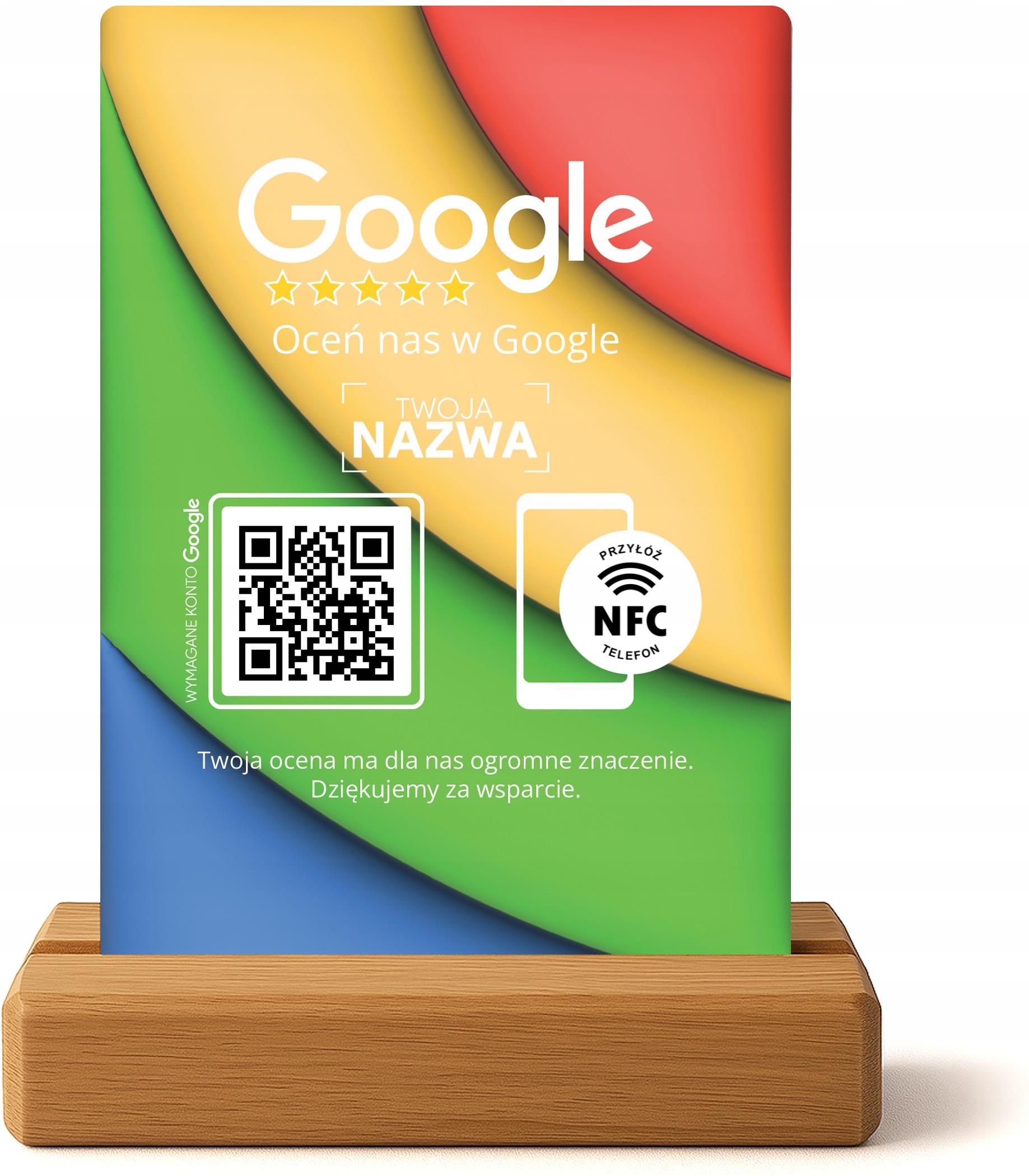 Personalizowany stojak Google z QR i NFC – stand z nazwą Twojej firmy Jastrowie
