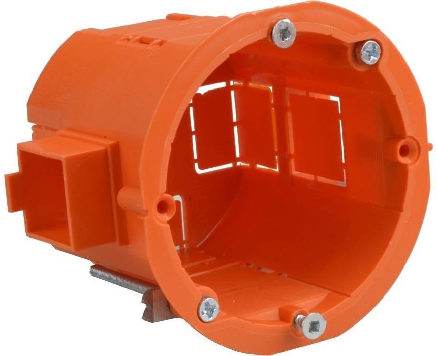 Puszka Podtynkowa Szeregowa Głęboka do płyt gips PK-60/60ŁG 60 mm 60 mm 5 sztuk 5 SZTUK Puszki podtynkowe wykonane są z tworzyw sztucznych o wysokiej wytrzymałości mechanicznej jak i elektrycznej. Puszki te mają zastosowanie w podtynkowych instalacjach elektrycznych. Cechy i zalety Specjalnie opracowana wysoka sztywność ułatwiająca montaż puszki Jeszcze łatwiejsze do wybicia, duże przepusty pozwalające na wprowadzenie szerszego zakresu przewodów i peszli Dużo miejsca na prowadzenie przewodów Możliwość łączenia wielu puszek w rząd (nawet różnej wysokości) Stabilne połączenie dla puszek z kanałami łączeniowymi - dzięki dodatkowemu połączeniu na kołnierzu puszki współpracuje z większością pokryw mocowanych na śrubki i tzw. „łapki” 4 gniazda na wkręty pozwalają na stabilny montaż osprzętu, umożliwiając wykorzystanie szerokiej gamy osprzętu, w tym ramek Charakterystyka Średnica: 63mm Głębokość: 60mm Rozstaw otworów: 60mm Stopień ochrony: IP30 Kolor: pomarańczowy Palność: 650°C