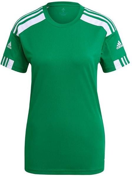 Koszulka damska adidas Squadra 21 Jersey zielona GN5752 Właściwości Damska koszulka adidas Squadra 21 jest doskonałą propozycją na trening. Wykonana z wysokiej jakości poliestru o gęstym splocie z wykorzystaniem technologii AeroReady, która odprowadza wilgoć na zewnątrz, zapewniając tym samym suchy komfort w czasie aktywności. Standardowy krój. Model w kolorze zielonym z białymi detalami. Materiał: 100% poliester