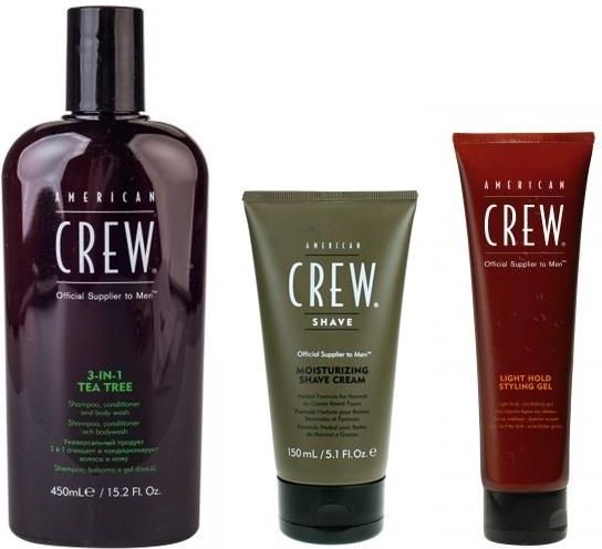 Zestaw dla mężczyzn od American Crew, szampon, odżywka, żel (3w1), krem, żel.