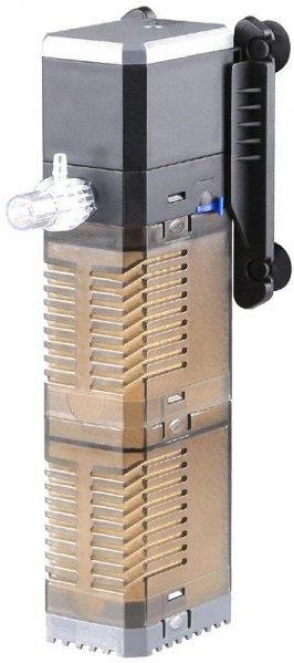 Jak działa filtr modułowy SunSun?Filtr standardowo wyposażony jest w dwa osobne kosze na media filtracyjne. Kosze można swobodnie i pojedynczo odpinać z filtra, aby dostać się do ich wnętrza. Pompa filtra wymusza obieg przez obydwa kosze lub jeden, gdyż jest możliwość podpięcia tylko jednego kosza. Kosze są sprytnie zintegrowane z pompą i tworzą spójną i mocną całość. Po co filtr posiada kosze na media filtracyjne?Kosze można odpowiednio wykorzystać zmieniając właściwości filtracji wody. W przypadku wystąpienia niechcianych parametrów wody można się wspomóc mediami takimi jak Organ-Ex, węgiel aktywny, bio-ceramika, Neo Media, bio-balle i inne wkłady filtracyjne. Pojemne koszą mogą być dowolnie zagospodarowywane. Ich kolejność może być swobodnie zmieniana. Czy filtr jest lepszy niż zwykłe filtry wewnętrzne?Możliwość dołożenia dowolnych wkładów filtracyjnych jest dużym udogodnieniem dla użytkownika i jest znaczącą zaletą produktu. Właściwość ta powoduje, że filtr znacznie przewyższa inne odpowiedniki. Regulacja przepływu:Filtr wyposażony jest w sprytną i płynną regulację przepływu. Umożliwia to dopasowanie mocy filtra do pojemności akwarium oraz względem używanych wkładów filtracyjnych. Napowietrzacz w filtrze Turbo:W zestawie znajduje się komplet złączek i wężyków do napowietrzania wody. Użytkownik ma możliwość korzystania z tej funkcji, lecz nie jest ona wymuszona na użytkowniku poprzez konstrukcje filtra. Funkcja napowietrzania jest rozwinięta o możliwość regulacji wydajności napowietrzania, dzięki specjalnemu zaworkowi powietrza, który również znajduje się w zestawie. Zaworek posiada specjalną gumową konstrukcje, która niweluje hałas pochodzący z tłoczenia wody i powietrza.Silnik i wirnik:Filtr producenta SunSun zbudowany jest na bazie wieloletnich doświadczeń. Cechuje się niezawodnością i wydajną pracą oraz wysoką energooszczędnością. Wirnik, będący sercem urządzenia jest odporny na wysoki opór tłoczonej wody, a ponad to posiada oś z spieku metali nierdzewnych z tytanem, umożliwiając pracę pompy w wodzie morskiej.Co znajduje się w zestawie:- pompa wody z regulacją wydajności- 2 x kosze na media filtracyjne- 2 x gąbka filtracyjna- zestaw do napowietrzania- uchwyt na filtr z przyssawkami- dodatkowy wylot wody- wylot umożliwiający podpięcie węzy akwarystycznychDane techniczne:- pobór mocy: 20W- wydajność maksymalna: 900l/h- wydajność minimalna: 150l/h- do akwarium: 40l do 125l- wymiary: 276x49x73mm...