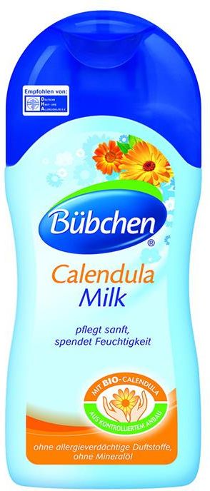 Bubchen, niemieckie kosmetyki dla niemowląt i dzieci, charakteryzują sie niezwykłą delikatnością i nie powodują praktycznie żadnych odczynów na skórze dziacka. Skład kosmetyków oparty jest na bazie naturalnych olejków i wyciągów z olejków roślinnych. Podstawowa seria "niebieska" i szczególnie polecana dla dzieci z alergiami skórnymi seria Calendula, mogą być stosowane od pierwszych dni życia.Seria Calendula, oparta o zawarte w niej, znane jako szczególnie pomocne przy regeneracji i chorobach skóry, wyciągi z nagietka, wpływa na doskonałą kondycję skóry. Równie skutecznie wspomaga gojenie uszkodzeń mechanicznych jak powstałych w wyniku alergii. Bubchen Calendula Mleczko Do Pielęgnacji Niemowląt Z Panthenolem 200ml Naturalny mleczko do przeznaczone do codziennej pielęgnacji delikatnej skóry dziecka.Zawarte w nim naturalne substancje natłuszczają delikatną skórę dziecka i zapewniają jej długotrwałą ochronę przed wysuszeniem, przez co skóra staje się miękka i delikatna.Ze specjalna formułą calendulaNagietek pochodzi z kontrolowanych upraw, przez co wspiera naturalny rozwój zdrowej skóry. Jego kojące działanie znane jest od wieków. Szybko regeneruje podrażnioną skórę i zaczerwienienia.Zawiera wyciąg z nagietka, z dodatkiem panthenolu, olejku migdałowego i olejku ze słonecznikaPrzebadany dermatologicznie. Nie uczula i nie powoduje podrażnień. Koi wrażliwą i podrażniona skórę dziecka, utrzymuje ja w harmonii i pomaga zregenerować, wspiera naturalny rozwój zdrowej skóry, PH 5,5 neutralneNie zawiera oleju mineralnego ani barwników.Można stosować od 1 dnia życia