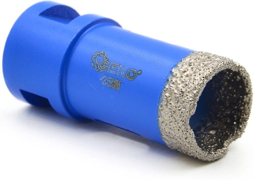 Otwornica diamentowa do gresu 18mm M14 GEKO G65118 Otwornica diamentowa przeznaczona do wiercenia na sucho. Wyposażona w gwint montażowy M14 do mocowania w szlifierkach kątowych. Doskonale sprawdzi się podczas wykonywania otworów w materiałach takich jak: gres, płytki ceramiczne, klinkier, glazura. Otwornice w rozmiarze od 6mm do 16mm zostały zalane od wewnątrz woskiem który odbiera ciepło z koronki zapobiegając jej przegrzaniu się. Należy jednaj pamiętać by na bieżąco usuwać z otwornicy urobek powstały podczas wiercenia. Cechy produktu średnica zewnętrzna: 18 mm wysokość nasypu diamentowego: 10 mm mocowanie: gwint M14 (szlifierki kątowe) otwornice w rozmiarze od 6mm do 16mm zostały zalane od wewnątrz woskiem
