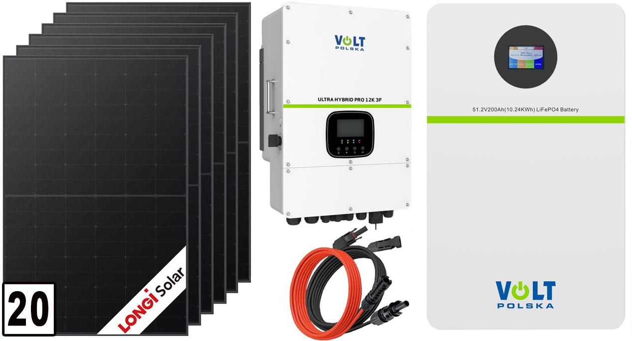 Hybrydowy zestaw solarny 12000W: 20 x panel 435W + magazyny energii 200Ah + przewody do połączenia + inwerter hybrydowy ULTRA HYBRID PRO 12K 3F 48/230 Jastrzębie-Zdrój