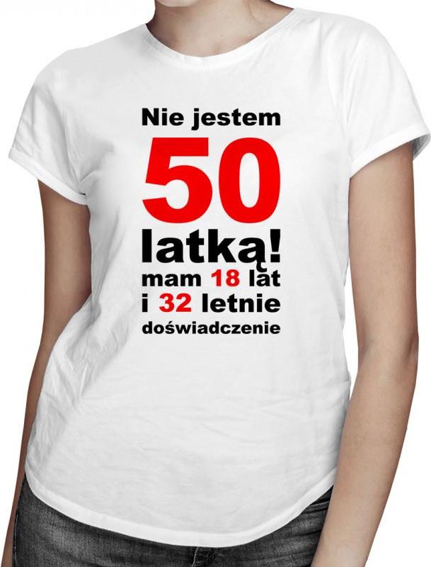 Koszulkowy Nie Jestem 50-Latką! Mam 18 Lat I 32-Letnie Doświadczenie - Damska Koszulka Z Nadrukiem Jastrzębie-Zdrój